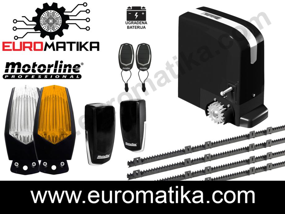 Kit za klizna dvorišna vrata Motorline 524 Bravo sa baterijom je uređaj za klasičnu dnevnu stambenu kućnu upotrebu te je samim time dizajniran da bude jednostavan za postavljanje i održavanje. Sam motor je prilično snažan, te je dizajniran da izdrži najveće napore i opterećenja prilikom uporabe. Kit za klizna dvorišna vrata Motorline 524 Bravo se uspješno nosi sa prekomjernim snježnim padalinama i kako novim i teškim, tako i sa starijim i dotrajalim vratima. Sa silom od 700Nm, motor za klizna dvorišna vrata Motorline 524 Bravo je i više nego snažan, kvalitetan, konkurentan i pristupačan proizvod u odnosu na cjelokupnu konkurenciju. Motorline 524 Bravo je istosmjerni motor na 24V sa jednostavnim otključavanjem i ugrađenom pomoćnom baterijom u slučaju nestanka struje te kontrolnu ploču, za vrata maksimalne težine do 500kg.