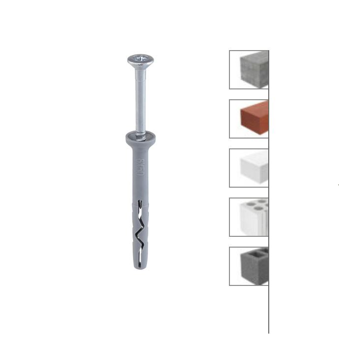 UDARNI VIJAK S TIPLOM– SM sastoji se od polietilenske ili poliamidne čahure, vijak s upuštenom glavom izrađen od galvaniziranih premaza ili neelektrolitički