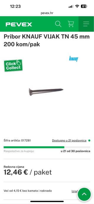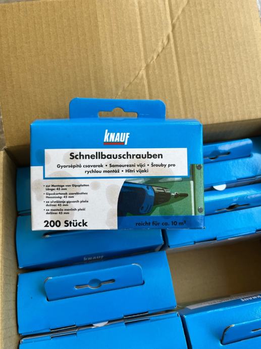 Prodajem 10 paketa knauf vijaka TN45,paket sadrži 200 komada vijaka.Moguća dostava u Split i Šibenik.Cijena svih 10 paketa je 50€.