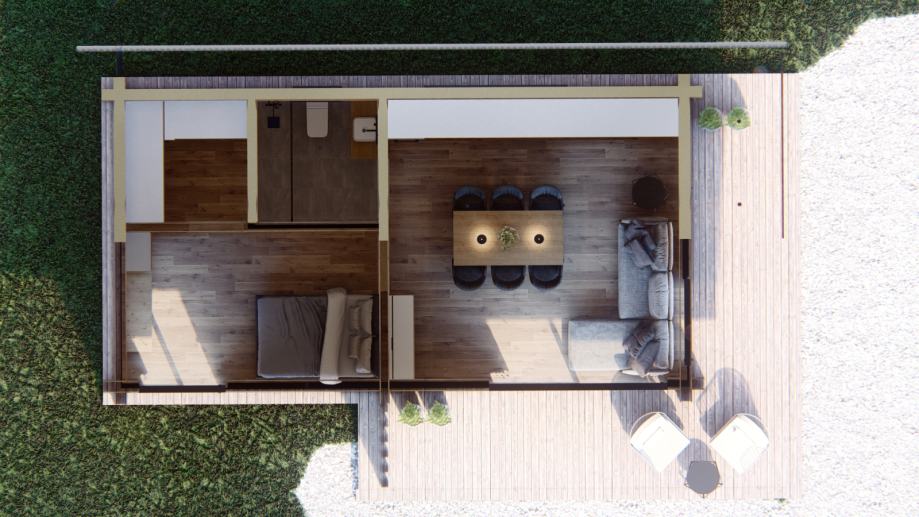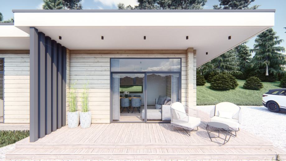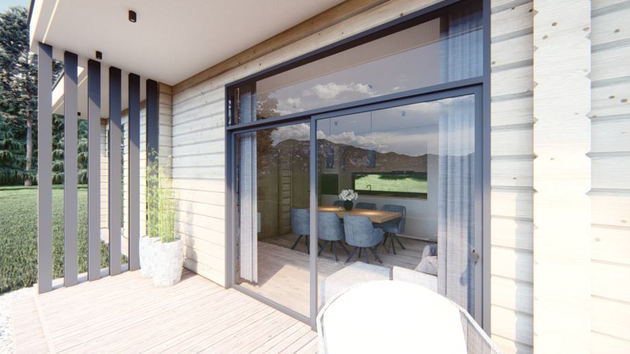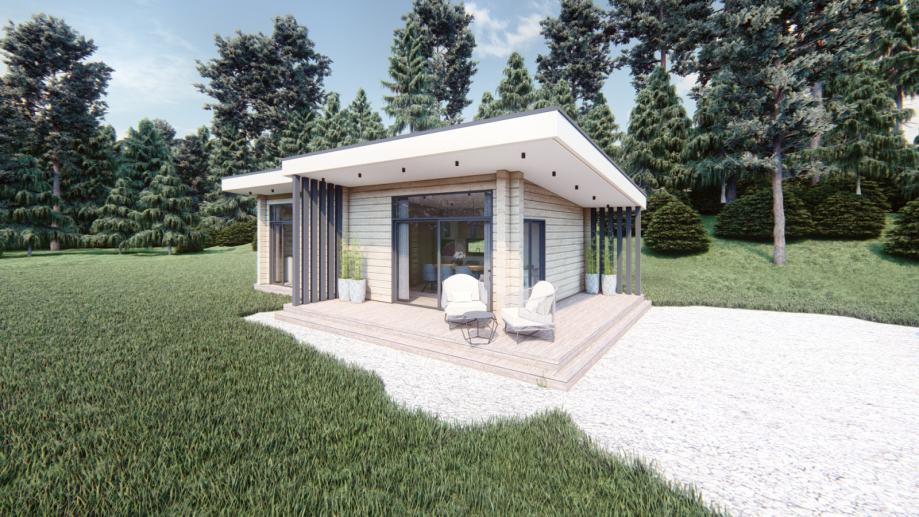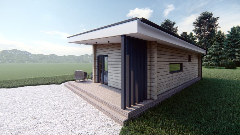 U ponudi Imamo drvenu kuču prizemnicu sa terasom.