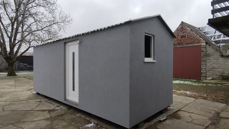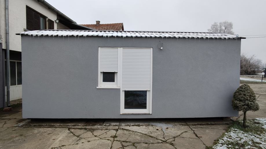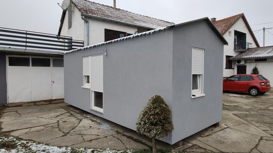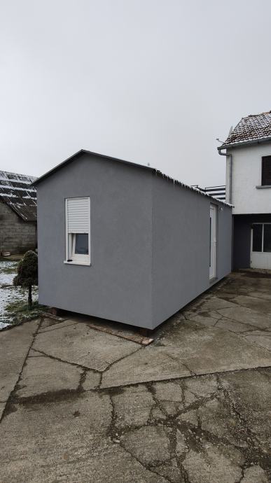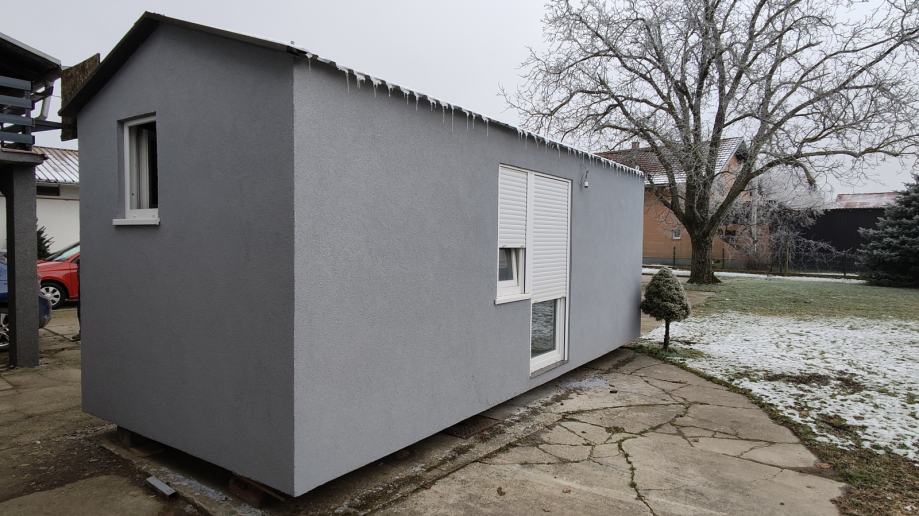 Prodajem mobilnu kuću vanjskih dimenzija 6x2,5m, metalna konstrukcija, stiropor fasada 5cm, unutrašnja izolacija staklena vuna i knauf, PVC stolarija, napravljene sve instalacije, potrebno samo namjestiti.