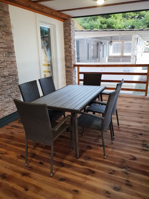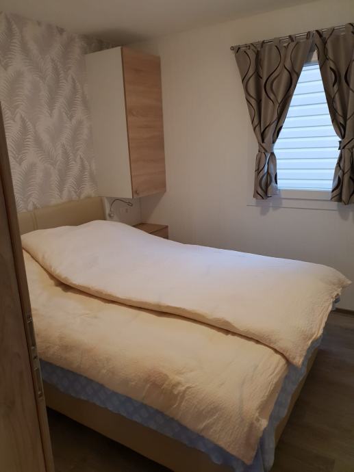 Prodajem mobilnu kućicu 36m2 u odličnom stanju. Blagovaona sa dnevnim boravkom i kuhinjom, jedna soba sa bračnim krevetom i kupaonicom, jedna soba sa dva odvojena kreveta, i još jedna kupaonica posebno. Velika natkrivena terasa 18m2 po cijeloj širini kućice.