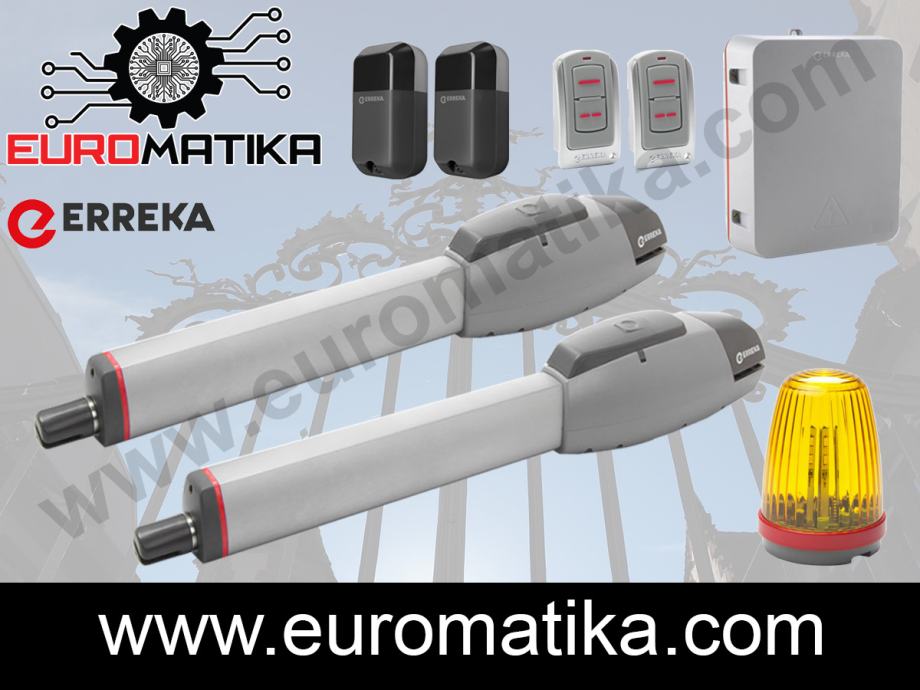 Kit Erreka Kairos predstavlja kvalitetno rješenje za automatizaciju dvorišnih krilnih vrata do 3 m duljine i 300 kg težine po krilu. S motorom snage 3000N, omogućuje snažno i tiho otvaranje i zatvaranje vrata. Ugrađena funkcija detekcije prepreka i opcija samozaključavanja podižu sigurnost na višu razinu. Sustav je dizajniran za jednostavnu instalaciju i programiranje zahvaljujući kontrolnom panelu SMART-D201. Osim standardnog daljinskog upravljača, vrata je moguće otvoriti i pomoću tipkala ili električnog ključa, a predviđen je prostor za pomoćne baterije za slučaj prekida napajanja.