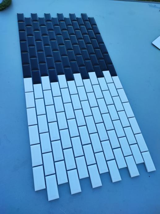 Veoma lijepe i kvalitetne mozaik pločice , ostale su od uređenja apartmana oko 50 m2 bijelih i oko 50 m2 crnih pločica , i nešto više