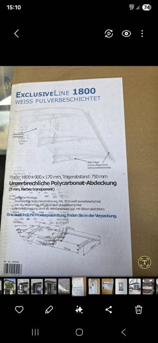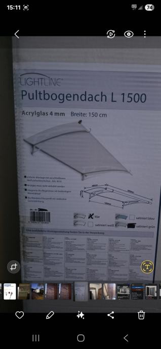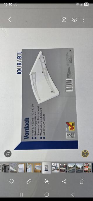 Nadstrešnica za vrata 180 x 90, novo, 150 x90, 140 x 90, 220x90