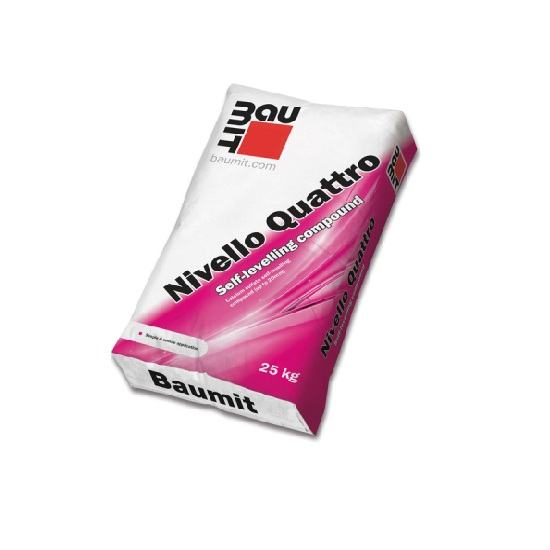 Baumit Nivello Quattro usipati u hladnu, čistu vodu i s pomoću prikladne, spororotirajuće miješalice (maks. 600 min-1) zamiješati u homogenu masu bez grudica (vrijeme miješanja oko 2-3 min). Vrijeme obrade na 20°C iznosi 30 minuta.