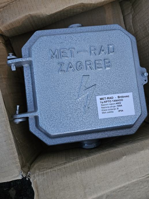 Ovo je električna razvodna kutija, model KPTO 1XNHOO, proizvedena od strane tvrtke MET-RAD Zagreb.