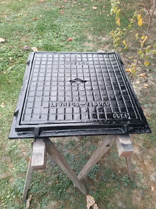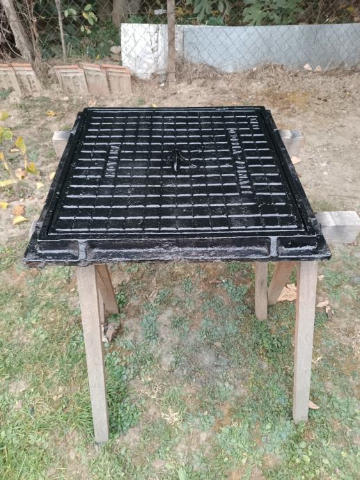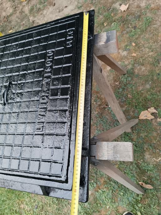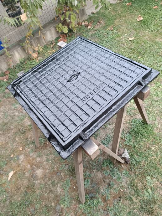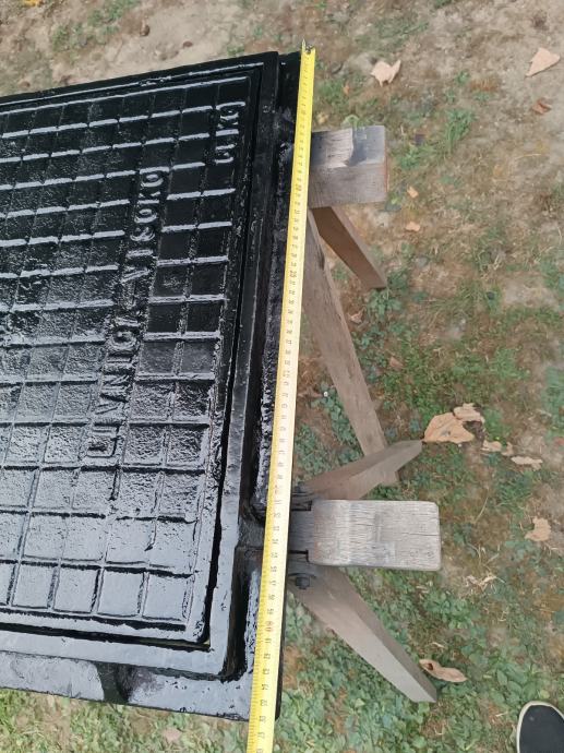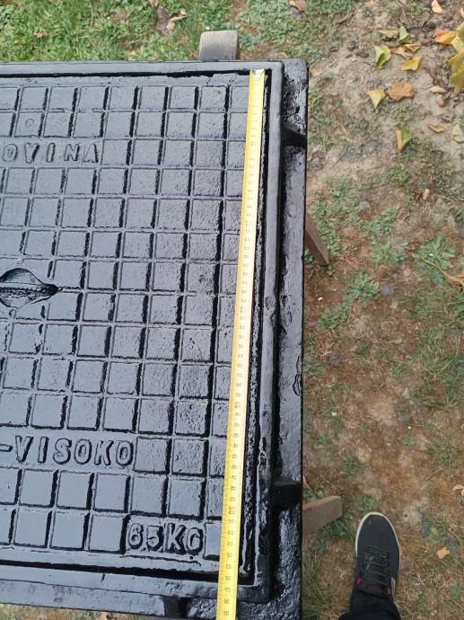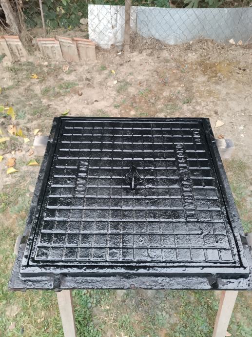 Prodajem masivni guseni poklopac za šaht sa okvirom, dimenzije se vide na slikama