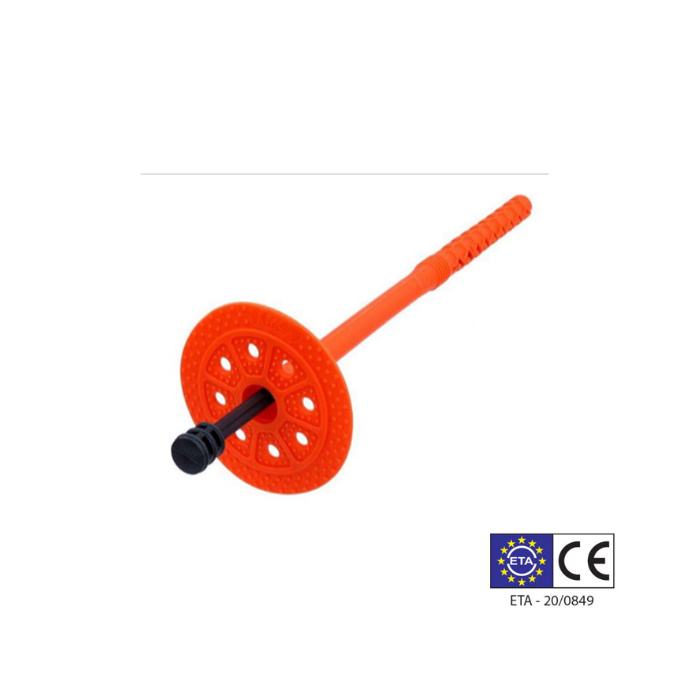 Plastična udarna tipla s plastičnim trnom za pričvršćivanje izolacijskih fasadnih ploča od stiropora.