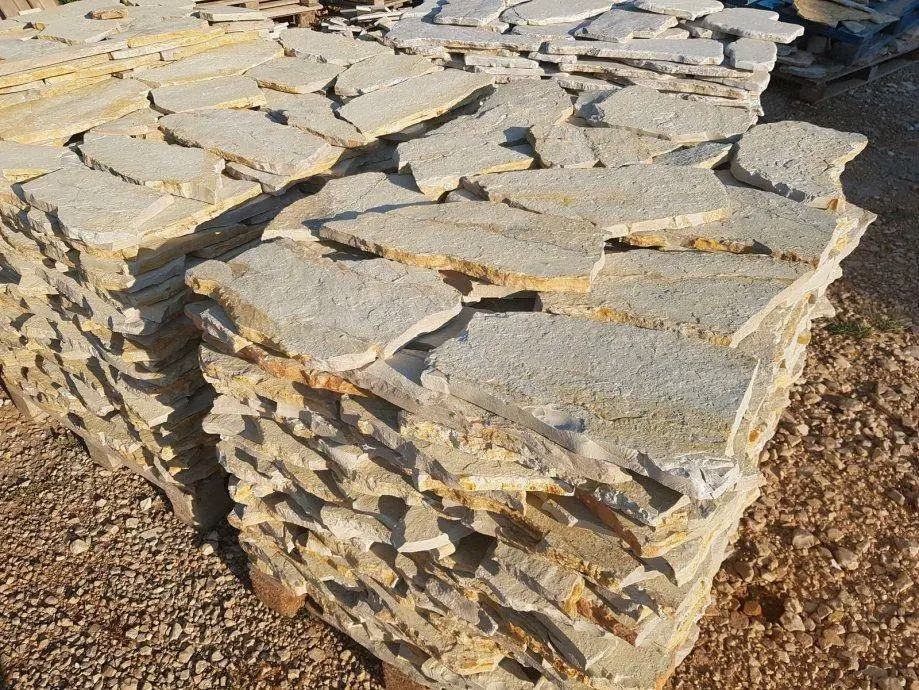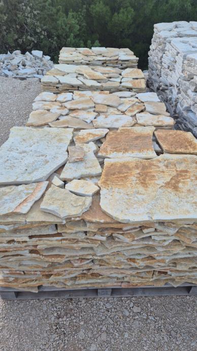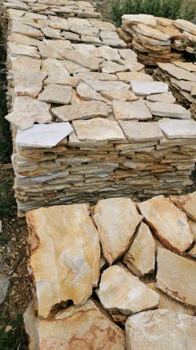 Prodajem benkovački kamen lomjeni zuti debljine od 2 cm 3cm i 4cm i 5cm sluzi za oblaganje zidova kamina fasada kuca i za popločavanje dvorista staze parking i za oko bazena 700 m2 cijena 9 eura kvadrat zovite na broj mobitela 0997365669 moguća dostava povoljno