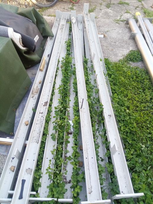 U profili su pjeskareni, grundirani i završno premazani. Noge su pripremljene za montažu vijcima + stope za betonažu. Materijal je bio garaziran i nikad korišten. Nacrt za predviđenu montažu i slike na fotkama.
