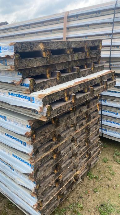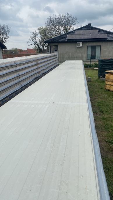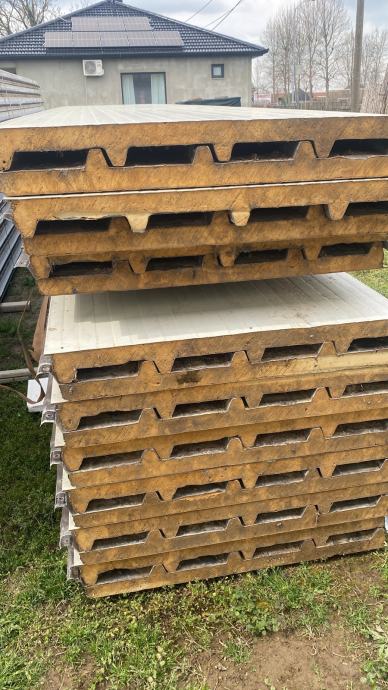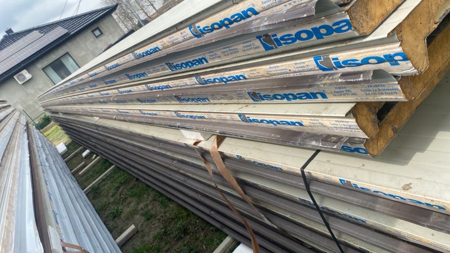 Prodajem rabljene krovne sendvič panele debljine 5 cm marke Isopan. Radi se o standardnim krovnim panelima koji se koriste u izgradnji hala, nadstrešnica i sličnih objekata. Paneli su s trapeznim profilom na vanjskoj strani.