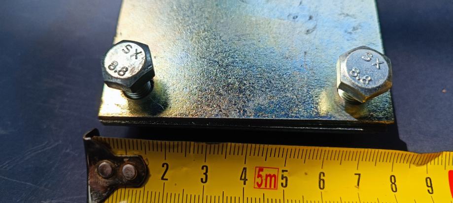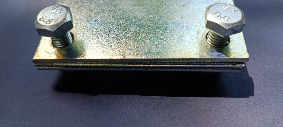 Pocinčana spojnica za FeZn traku. Spojnica se sastoji od tri pločice sa četiri vijka i četiri matice. Više komada. Cijena 3.30 eura za komad.