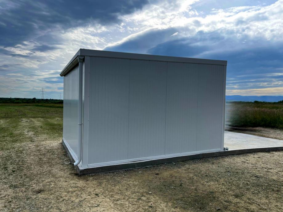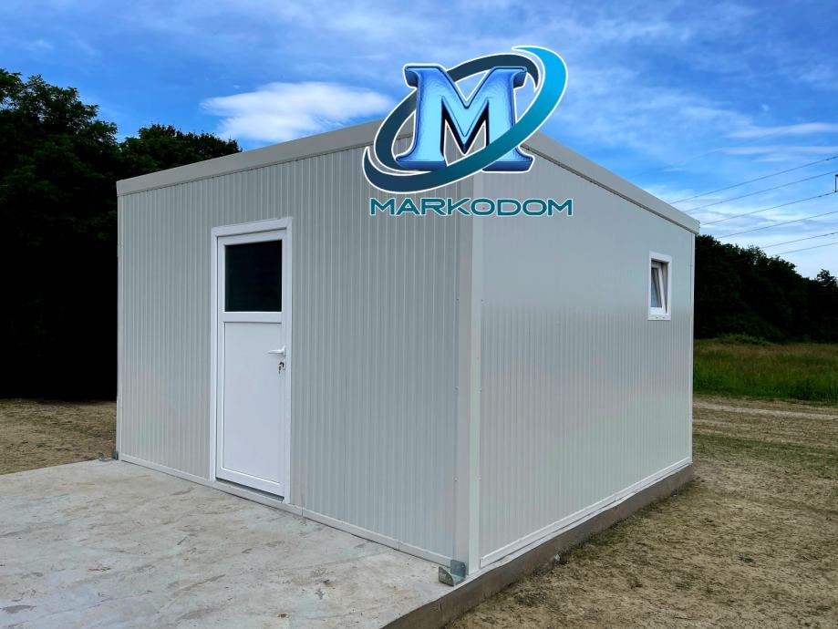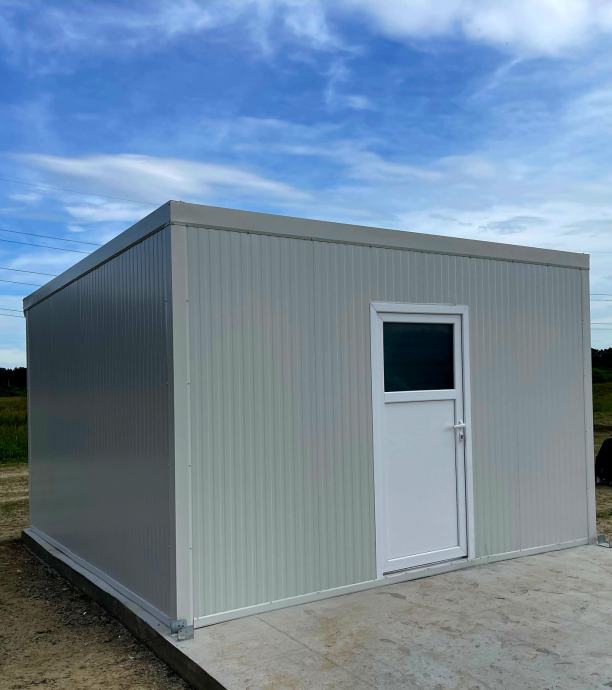 Dimenzije (ŠIRINA X DUŽINA X VISINA) 4x4x2,5m. U cijeni je uračunato: objekt sa slike (pocinčana konstrukcija sa termopanelima debljine 30mm), pvc prozor i vrata, odvodnja krovne vode i završne ukrasne lajsne. Na cijenu se dodatno obračunava dostava ovisno o lokaciji, dok je montaža gratis. Moguće su i druge dimenzije prema Vašim potrebama i željama.