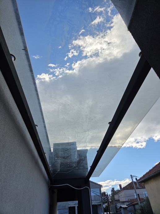 Prodajem staklenu nadstrešnicu sa fotografije tlocrtnih dimenzija 130x390cm.