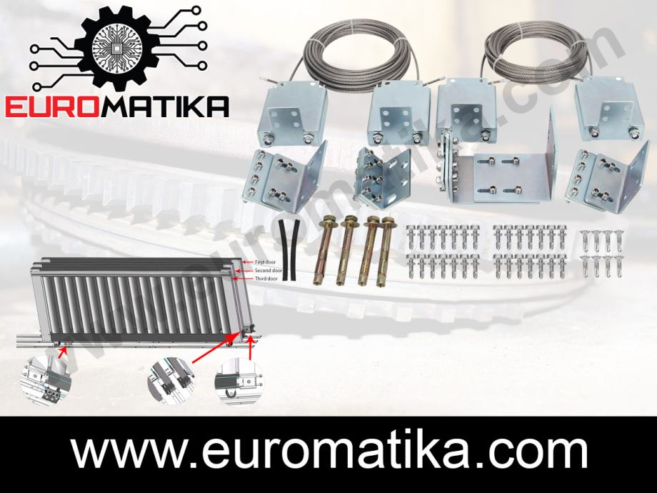 Komplet za teleskopska vrata s 3 krila – rješenje za kapije i ograđene ulaze u kojima standardna vrata ne odgovaraju. Uključene vodilice, zglobni sistemi i nosači. Video u opisu olakšava instalaciju, bez dodatnih troškova.