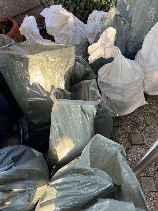 Poklanjam šutu. Odštemana podna glazura, zapakirana u vreće i snešena ispred kuće.