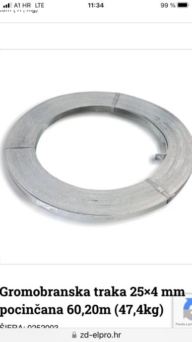 Prodajem novu nekorištenu traku za uzemljenje 25x4mm, fe zn, kao s slika