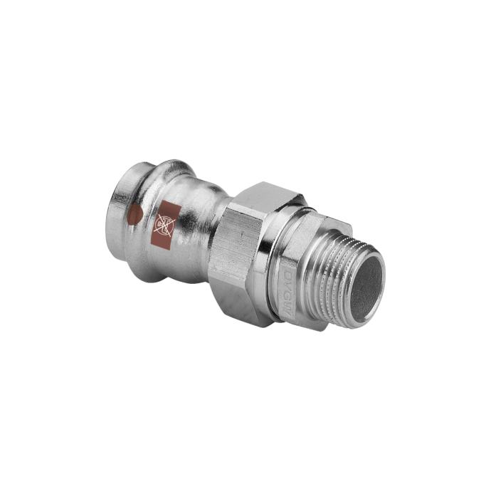 - sa SC-Contur - nehrđajući čelik - press priključak, R-navoj - s ravnim brtvljenjem - Plosnata brtva EPDM, brtveni element EPDM, navojna spojnica s preturnom maticom, višestrana varijanta - Podaci o materijalu odnose se na komponente koje su u doticaju s vodom. Preturna matica je od poniklanog mesinga. - Nije prikladno za instalacije pitke vode!