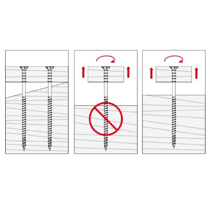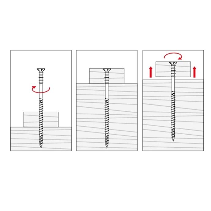 Dodatno, vrh je opremljen reznim urezima na navoju koji režu drvene strukture što olakšava zavrtanje.
