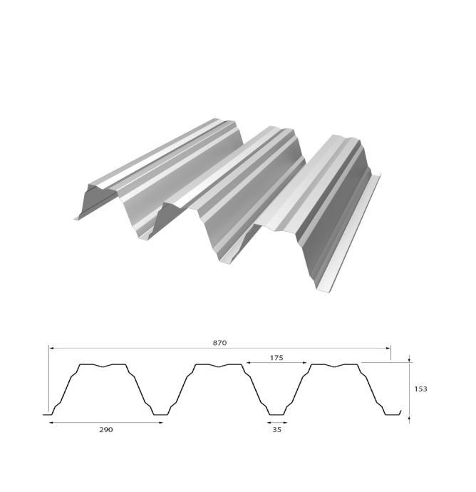 Visoko profilirani trapezni lim TR 153 / 290 / 870 - CIJENA NA UPIT