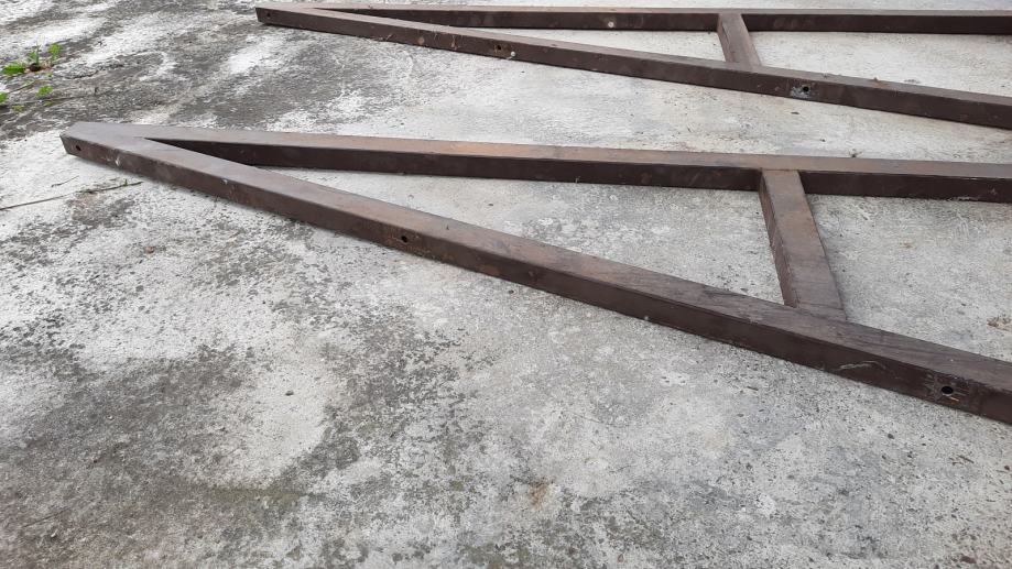 Prodajem 2 metalna nosača za nadstrešnicu, dužina 163,5 cm i visina 64 cm.