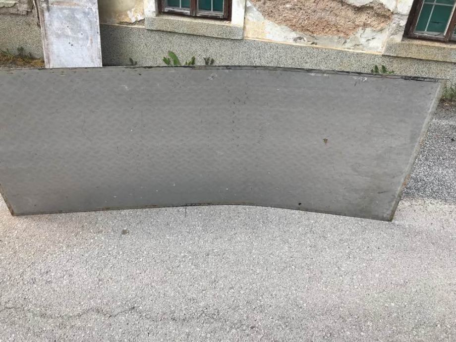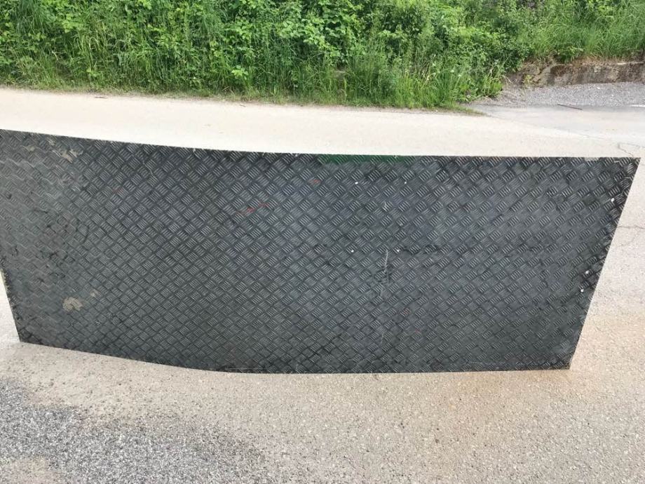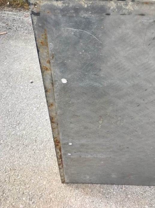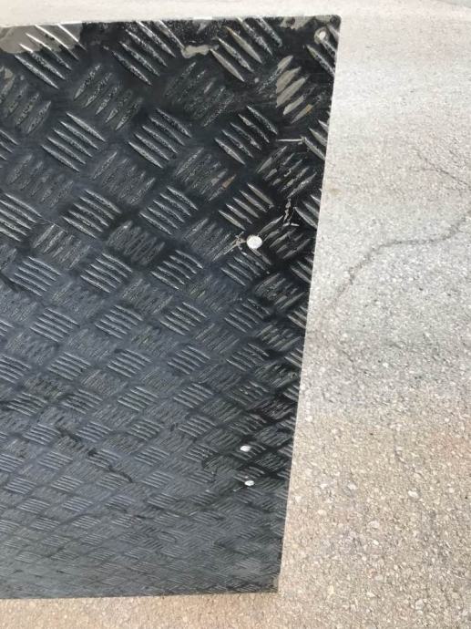 Ploču aluminijsku 3 mm debljine,2,5x1 metar,jedna strana glatka,deuga rebrasta,ima nekoliko manjih rupa po rubu i na sredini.