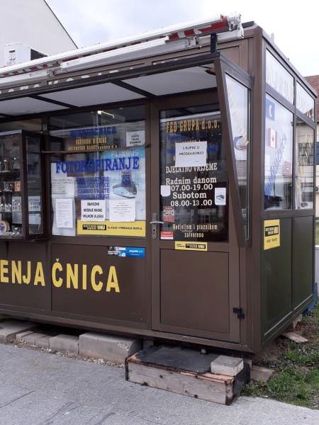 Prodaje se Aluminijski kiosk sa el. instalacijama, vanjskom neonskom reklamom, tendom i klimom 8m2,3,,