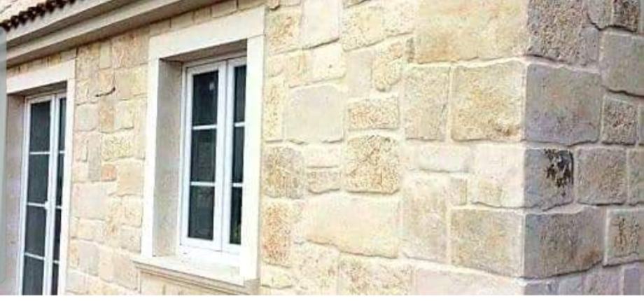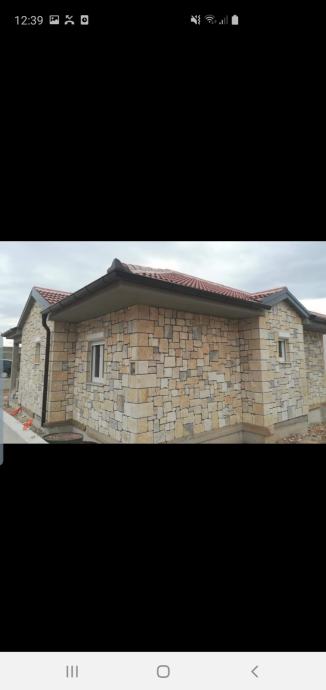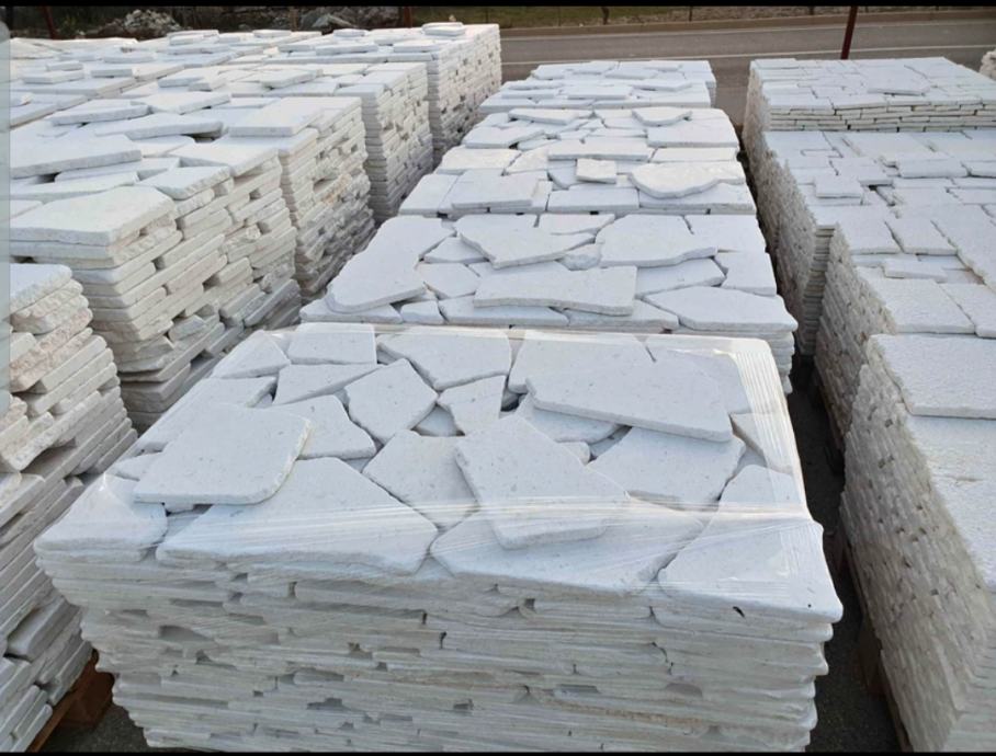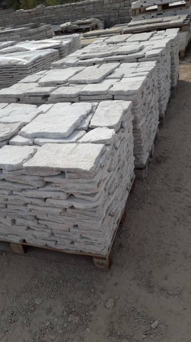 Je sjecen u cetvrtane komade sa prirodnim rubovima. Ima tople bijelo-zuckaste nijanse.