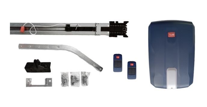 - elektro pogon s elektronikom na 24V, kompletna vodilica od 290 cm (lanac), 2x BFT mitto2 daljinski upravljač, pakiranje, upute za montažu te materijal za vijke!