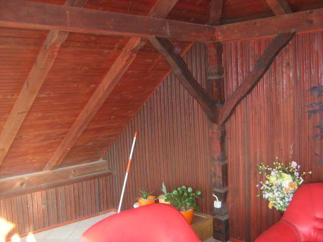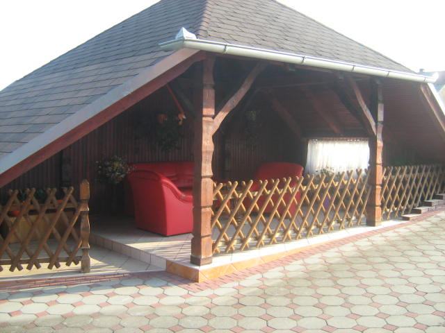 Drvena sjenica za preseliti, jelovina, dimenzija 8.5 mx3.5 m,pokrov lamperija pa daska i šindra, krovna limarija, uokolo sve lamperija, luster, garnitura za sjedenje i masivni stolić,ograda ispred sjenice veliko betonsko korito kao tegla za cvijeće, uglavnom sve što je na slikama prodajem radi preuređenja okoliša.