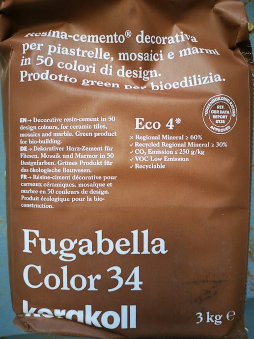 Nikad iskorišten višak materijala za keramiku vrlo povoljno prodajem. Talijanska odlična smeđa fug masa: 25 pakiranja od 3kg (sa slike). Idealno za pločice smeđe boje ili uzorka drveta. Odgovara za unutarnju ili vanjsku keramiku. Cijena po dogovoru (može i 2 eura po pakiranju ili manje na količinu).