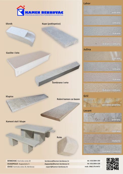 Ovi proizvodi izuzetno su zanimljivi i traženi jer pružaju široku mogućnost primjene i kreativnog izražavanja, posebno jer možete birati između različitih materijala (Pulenat, Južina,Južina Moka, Lahor, Lahor Colorato i Levant) te četiri završne obrade: poliranje, četkanje, štokanje i štokanje-četkanje.