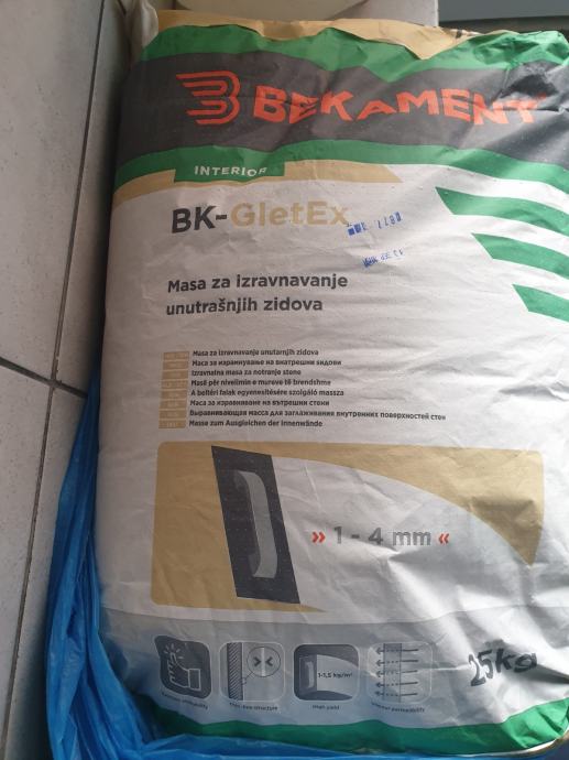 Tri vreće Bekament glet mase od 25 kg prodajem ukupno za 100 kn sve