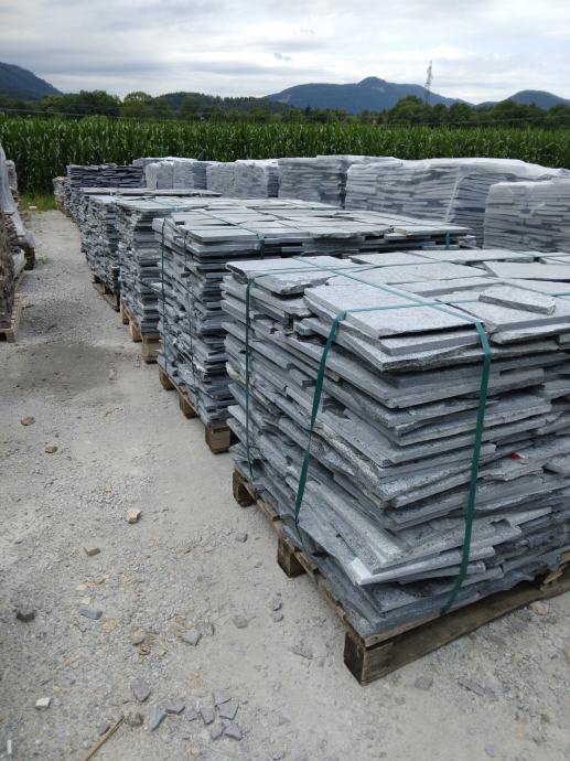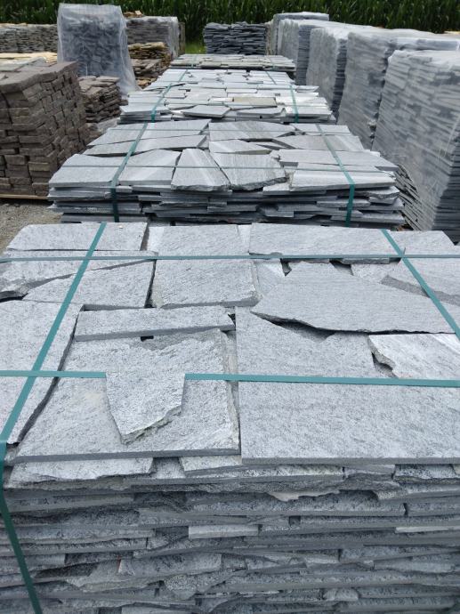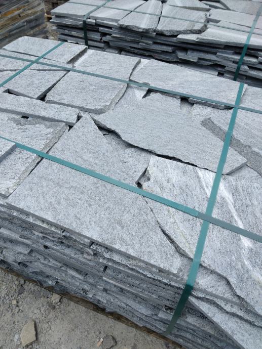 Granit lomljeni kosi nepravilnih oblik za oblaganje stenskih in talnih površin. Debelina kamna 1 cm.