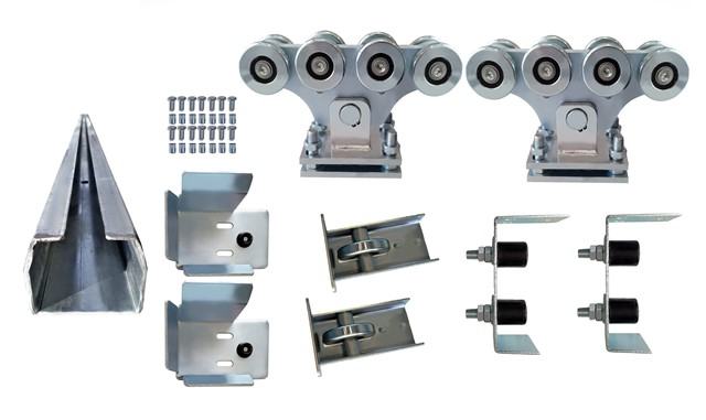 Visokokvalitetni, robusni hardver za vodilice kliznih vrata KIT KOMPLET - MODEL JOY neće vas razočarati. Prilikom kupnje seta dobivate dva 2-pocinčana kolica s 8 kotača, dvije-2 udarne čaše, 2 udarna kotača i 1 pocinčanu vodilicu, dužine 580 cm!