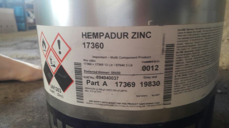 HEMPADUR ZINC 17360 dvokomponentna je, cinkom bogata, epoksidna temeljna boja. Otvrdnjavanjem prerasta u premaz izuzetno otporan na atmosferilije i habanje. Pruza katodnu zastitu lokalnim mehanickim ostecenjima.