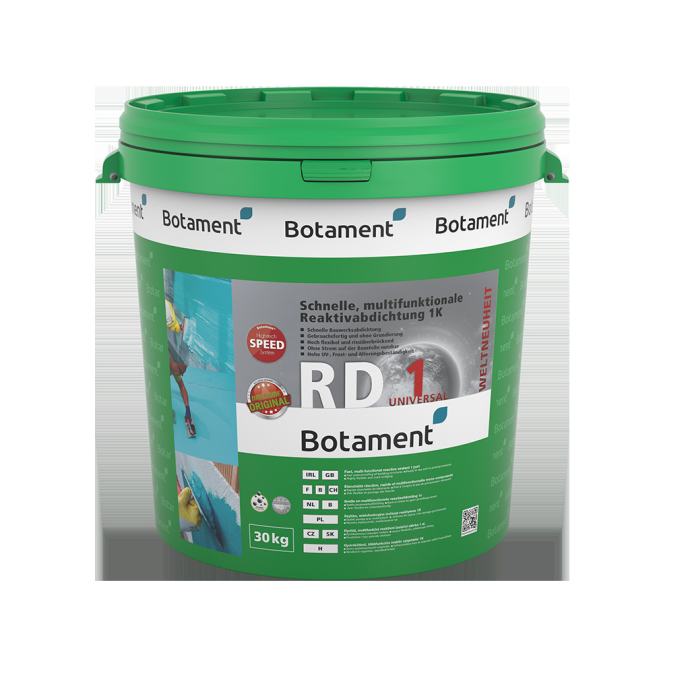 BOTAMENT® RD 1 Unviersal je jednokomponentna brzosušeća reaktivna izolacija, garantira sigurno izvođenje radova na novogradnji i kod sanacija, čak i na postojeću izolaciju. BOTAMENT® RD 1 Universal je atestiran prema DIN EN 15814 i DIN EN 14891 i ima Europsku tehničku procjenu (ETA – 18/0327) kao fleksibilni polimer modificirani debeli premaz (FPD).