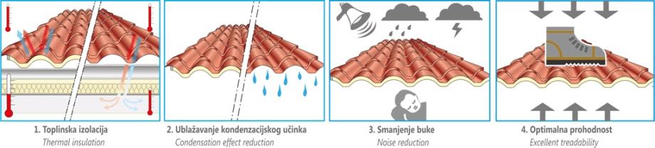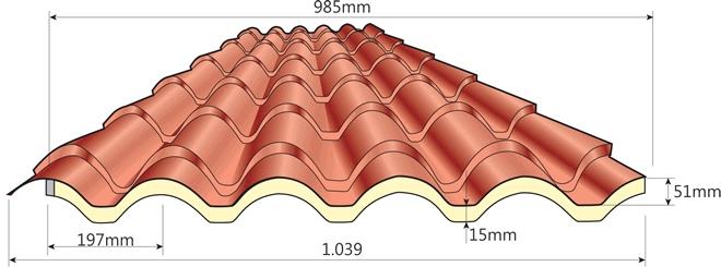 Krovni metalni panel u obliku crijepa, ispunjen visokoizolativnim poliuretanom. Odlično izolira Vaš krov, dok se u isto vrijeme izvrsno uklapa u primorske gradske jezgre. Glavne prednosti su mu: izvrsna termoizolacijska svojstva, smanjenje buke, mala težina, laka i brza ugradnja, jednostavna potkonstrukcija i vodonepropusnost elemenata.