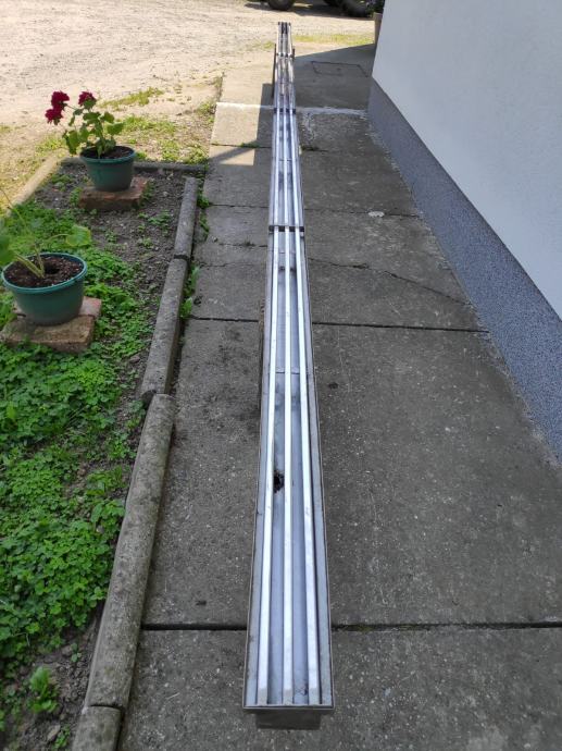 Prodajem podnu kanalicu za odvodnju oborinskih voda. Kanalica se ugrađuje u beton ili pločice, dužina je 5,2 metra ima dvije odvodne cijevi i četiri rešetke koje se skidaju radi čišćenja.lzrađena je od inoxa i nikad nije korištena.