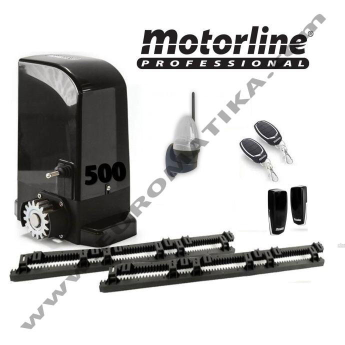 Kit za klizna dvorišna vrata Motorline 500 Bravo je uređaj za klasičnu dnevnu stambenu kućnu upotrebu te je samim time dizajniran da bude jednostavan za postavljanje i održavanje. Sam motor je prilično snažan, te je dizajniran da izdrži najveće napore i opterećenja prilikom uporabe. Kit za klizna dvorišna vrata Motorline 500 Bravo se uspješno nosi sa prekomjernim snježnim padalinama i kako novim i teškim, tako i sa starijim i dotrajalim vratima. Sa snagom od 230VAC, motor za klizna dvorišna vrata Motorline 500 Bravo je i više nego snažan, kvalitetan, konkurentan i pristupačan proizvod u odnosu na cjelokupnu konkurenciju. Motorline 500 Bravo je jednofazni motor sa jednostavnim otključavanjem i ugrađenom kontrolnom pločom, za vrata maksimalne težine do 500kg.