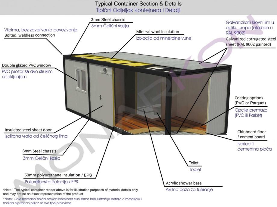 Firma Monarkon nudi Vam visoko-kvalitetne stambene kontejnere, izgradjene od metalne konstrukcije. Garantujemo najbolji kvalitet i najbolje cijene na trzistu. Odmah dostupni po standardnim dimenzijama i dimenzijama po narudžbi. Za vise informacija pozovite kontakt. Kontejneri za stanovanje