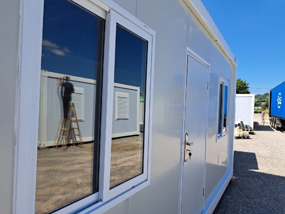 Velik izbor kontejnera svih dimenzija. Izrađujemo jedinice različitih dimenzija kao i duple kontejnere. Mogućnost ugradnje kupaonice. Sve jedinice imaju pvc prozore 1x1m, klasična ulazna vrata, razvedenu el.instalaciju, čvrst čelični okvir te kvalitetan cementni pod koji ne može istrunuti nikad. čelik je vruće cinčan. Sve jedinice su atestirane i odgovaraju svim našim standardima. Mogućnost biranja pozicije prozora i vrata te mogućnost dostave.