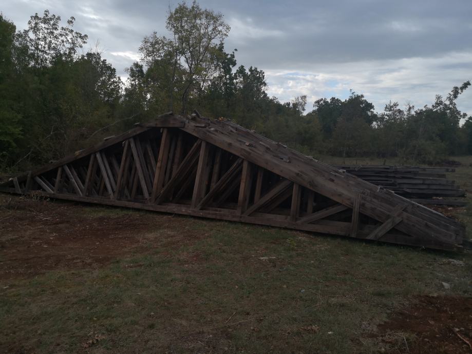 Krovna konstrukcija (10 kom) dimenzija 13x2,40 m, cijena po komadu 1100kn, prodajem ili mijenjam za crijep, željeznu armaturu, drvenu građu, blok ciglu....