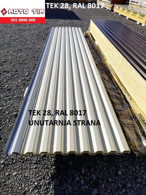 Panel TEK 28 u tamno smeđoj boji, RAL 8017, univerzalni je panel koji se može staviti i na krov i na zid.