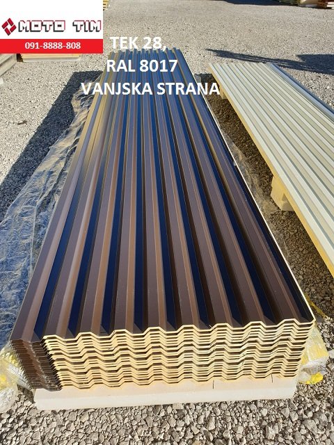 Panel TEK 28 u tamno smeđoj boji, RAL 8017, je univerzalni panel koji se može staviti i na krov i na zid.