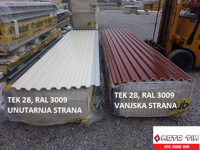 Panel TEK 28 u bordo crvenoj boji, RAL 3009, univerzalni je panel koji se može staviti i na krov i na zid.