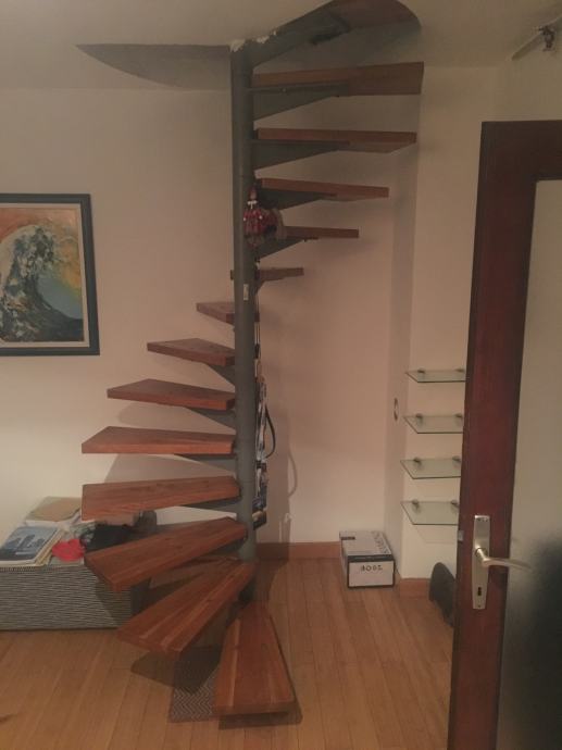 Korištene, za visinu 285 cm, podesivo po potrebi, 14 hrastovih ukljađenih gazišta d= 5 cm, dužine 70 cm na metalnoj konstrukciji.