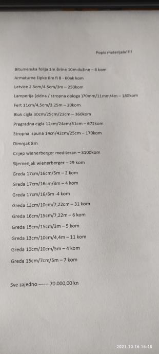 Prodajem građevinski materijal sa slika i popisa samo u kompletu. Vaš odvoz.