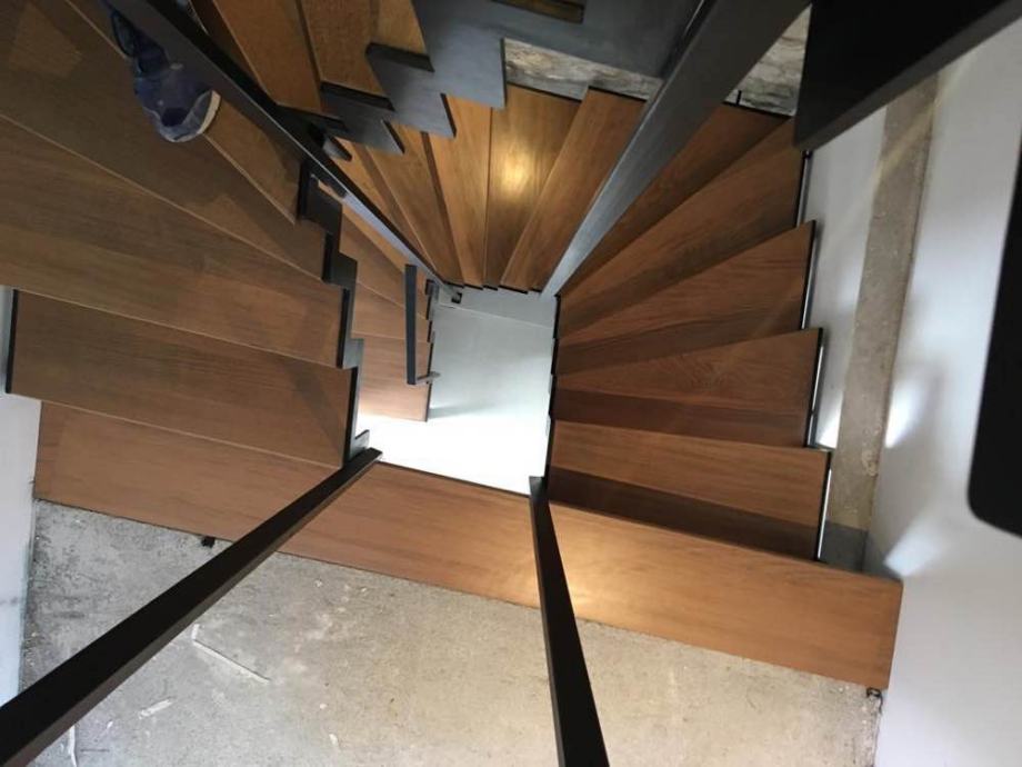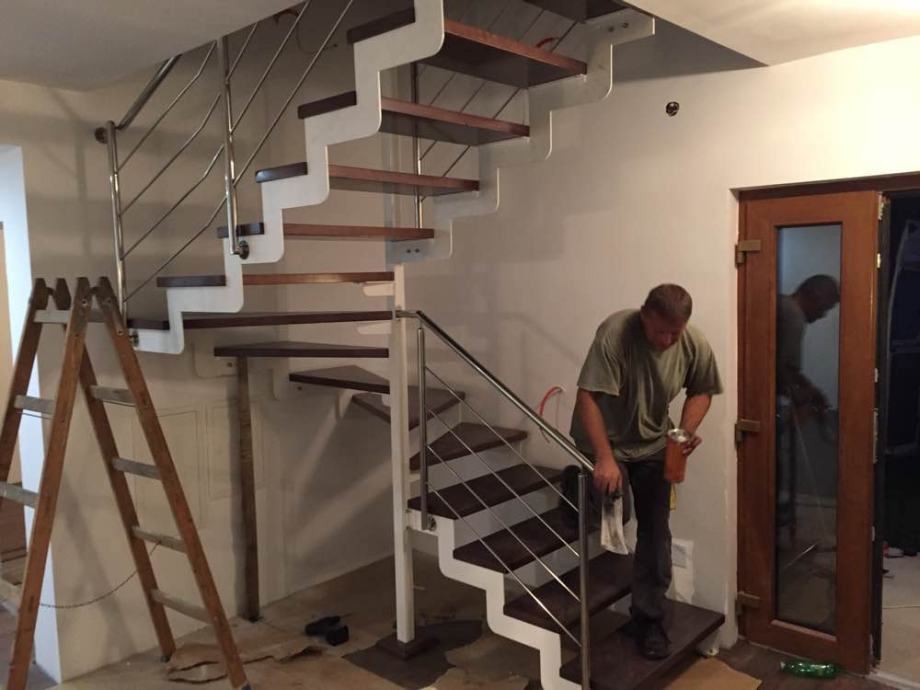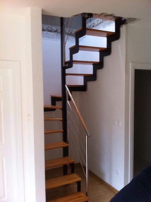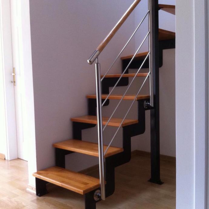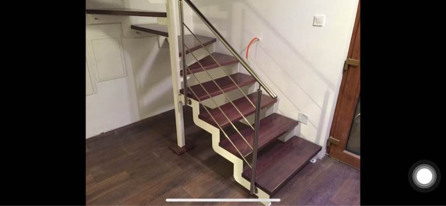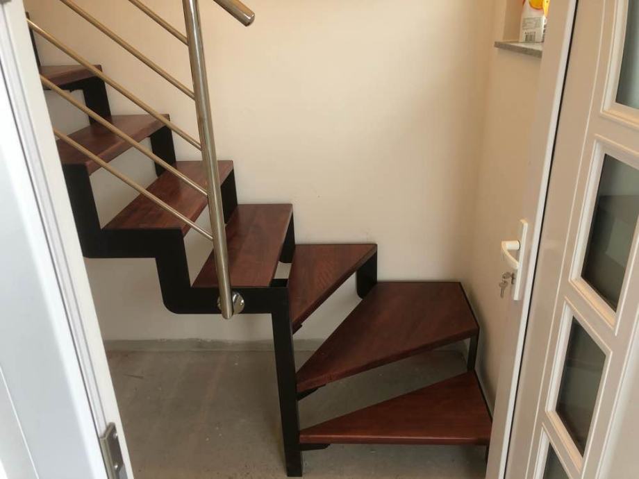 Metalne stepenice sa gazištima od bukve debljine 4cm. Projektiramo, izrađujemo i ugrađujemo. Ograda po želji kupca.